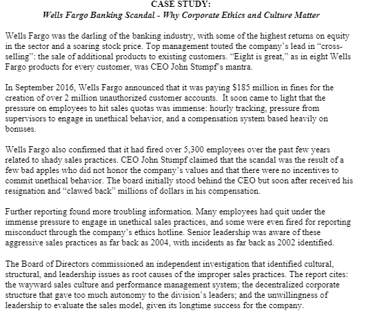 Solved Case Study Wells Fargo Banking Scandal Why Chegg Com
